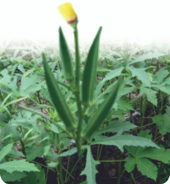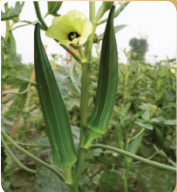 Tall vigorous plant with green leaves 40–42 days Glossy dark green with five ribs 14–16 cm Intermediate to high tolerance to YVMV Good keeping quality & suitable for long distance transportation