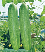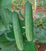Highly vigorous plant with short inter-nodes 35–37 days after sowing Slightly ribbed dark green 17–18 cm 180–200 g Parthenocarpic hybrid, suitable for polyhouses, multiple fruits per node