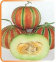 Early muskmelon with bold ribbed shape and strong aroma. Round blocky fruits with attractive striped pattern and commercial demand.